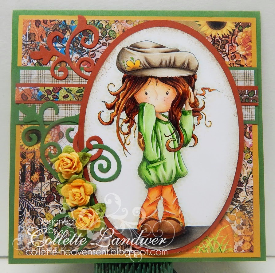 I just love this new paper pack, Fall Fancy, it was a shame to cover it up, but this digital image was just too cute, I had to find her a home.